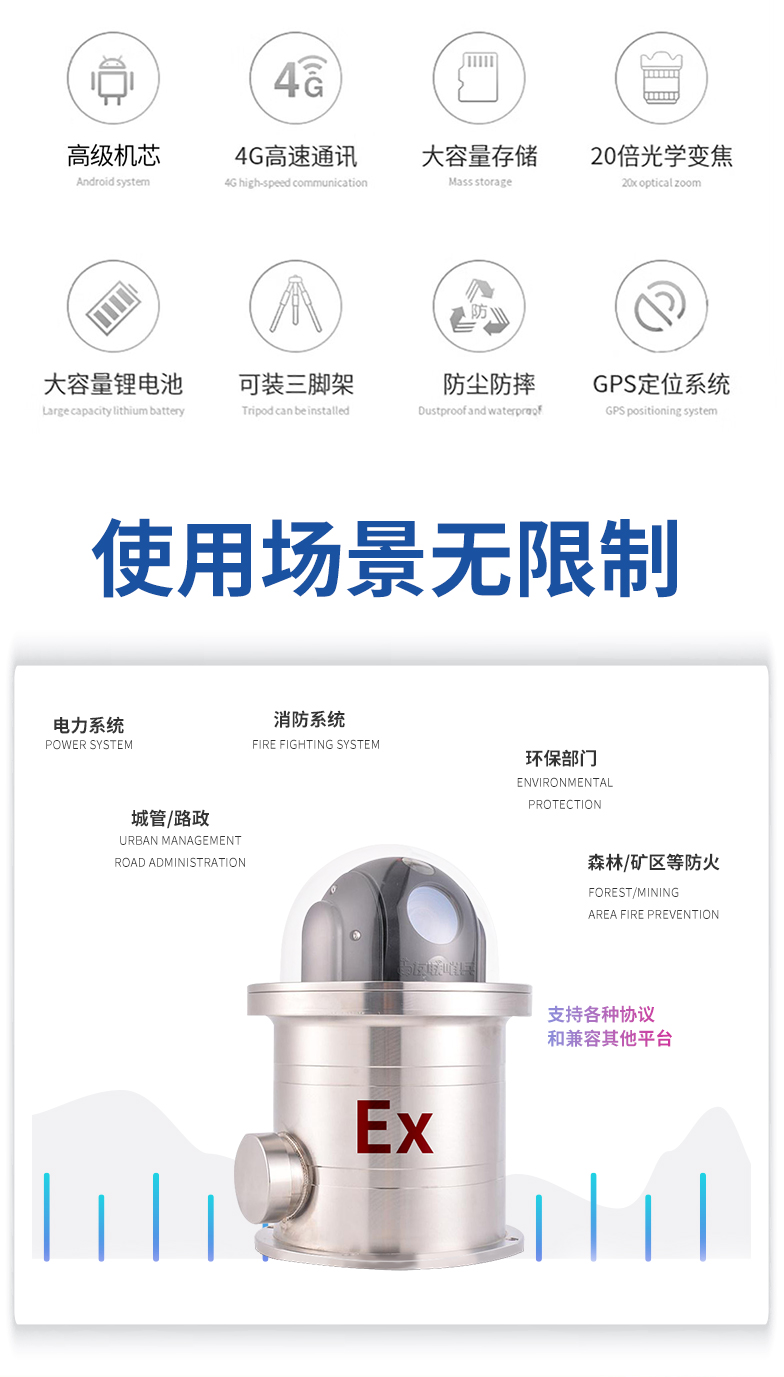 友聯(lián)哨兵5G防爆布控球是一款具備防爆功能的5G布控球產(chǎn)品,專(zhuān)為特定行業(yè)(如石油、煉化、化工、燃?xì)獾任kU(xiǎn)化學(xué)和易燃易爆行業(yè))設(shè)計(jì)。產(chǎn)品內(nèi)置高清攝像機(jī)及高性能鋰電池組,通過(guò)5G等無(wú)線網(wǎng)絡(luò)方式回傳至控制終端,具備防水防震防爆等特性,攜帶便捷,可快速安裝和收納,完全滿足石油、化工等作業(yè)區(qū)的移動(dòng)巡檢、無(wú)人值守、臨時(shí)監(jiān)控、應(yīng)急指揮的應(yīng)用需求。